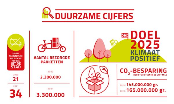 “Precies. Dat kan ook op sociaal vlak. Voor De Koffiejongens bijvoorbeeld; we pakken hun pakketjes in en bezorgen die met mensen uit de doelgroep (sociale banen red.). Zo combineren we sociale en groene bezorging, dat is het ideaal.”