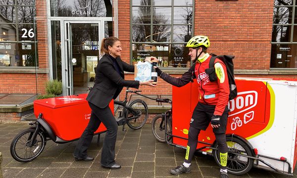 Voor de bezorging werkt Dopper samen met Cycloon dat in meer dan zestig steden in Nederland met fietskoeriers bezorgt.