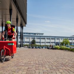 Nee, onze fietskoeriers kunnen veel aan, maar alleen het eerste en laatste stuk doen we op de fiets. Voor de grotere afstanden tussen de steden gebruiken we bestelauto’s op groengas. Zo rijden alle vervoersmiddelen daar waar ze het beste tot hun recht komen: de auto op de snelweg en de fiets in de stad.