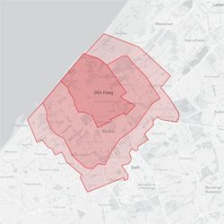 Onze fietskoeriers zijn binnen verschillende zones actief, weergegeven in de kaart hiernaast. Binnen zone 1 zijn zendingen al binnen 60 minuten op de plaats van bestemming. En nog voordelig ook.