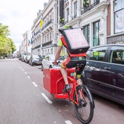 Nee, onze fietskoeriers kunnen veel aan, maar alleen het eerste en laatste stuk doen we op de fiets. Voor de grotere afstanden tussen de steden gebruiken we bestelauto’s op groengas. Zo rijden alle vervoersmiddelen daar waar ze het beste tot hun recht komen: de auto op de snelweg en de fiets in de stad.